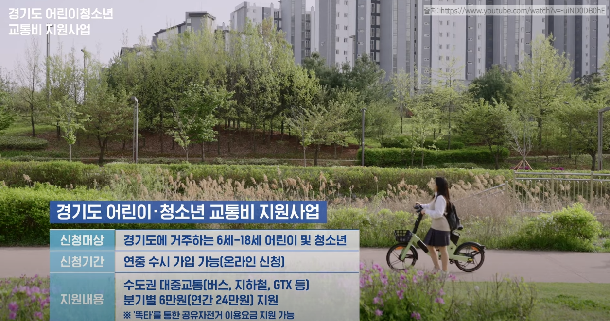수도권 대중교통을 이용하는 만 6세부터 만 18세까지의 어린이와 청소년이라면 최대 24만원 교통비를 100% 환급받을 수 있습니다. 경기도 청소년 교통지원은 24년 7월이 마지막 신청이니 혜택 놓치지마세요!