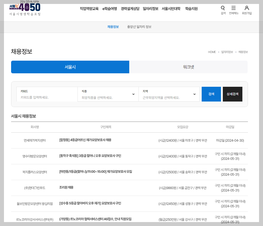 - 사업대상 : 40-67세 서울시 거주자 ※ 모집 공고별 요건 확인 필수