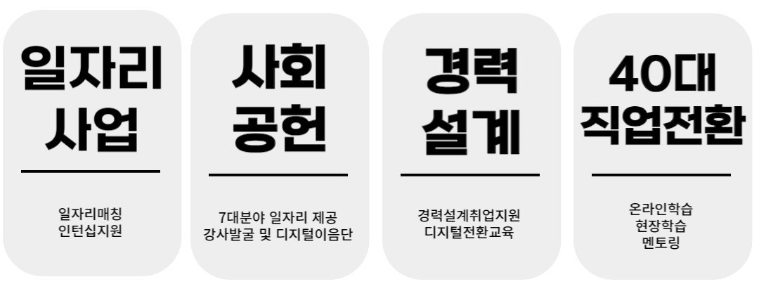 - 직업기초역량 강화: 직업전환을 위한 다양한 학습 콘텐츠 제공