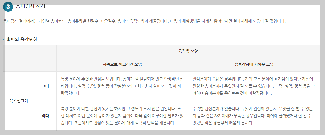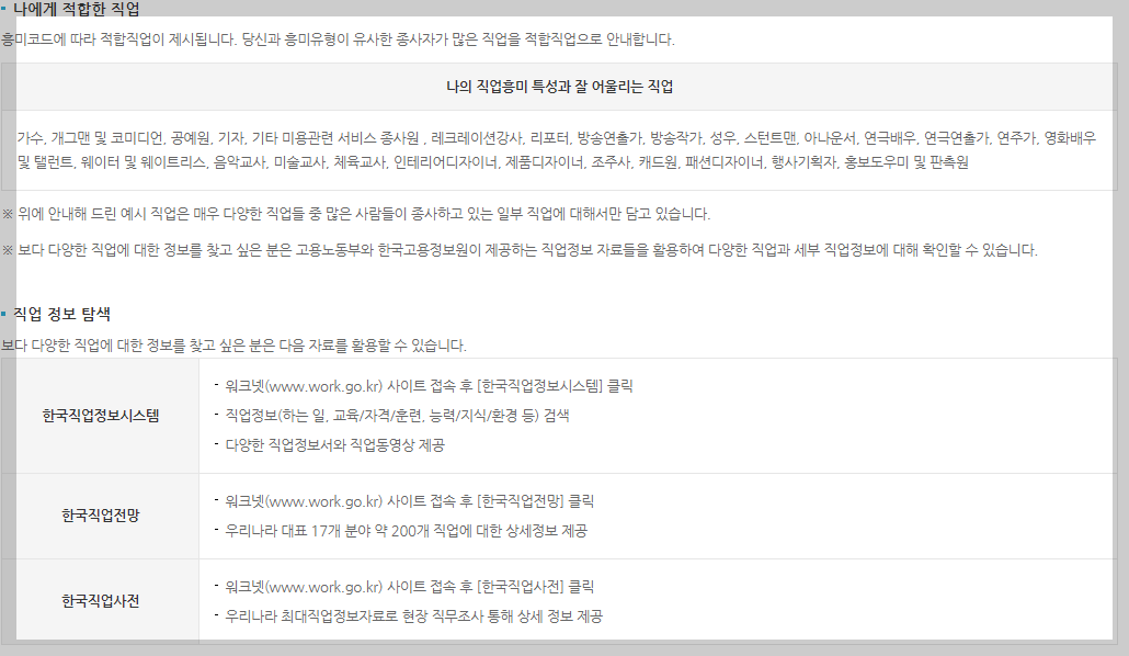- 설명: 개인의 흥미유형 및 적합직업 탐색