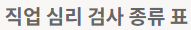 - 설명: 개인의 흥미유형 및 성격, 생활사 특성을 측정하여 적합 직업 안내