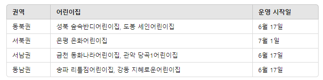 서울시는 권역별 (동북권, 서북권, 서남권, 동남권)로7개의 어린이집에서 서울형 시간제전문 어린이집 서비스를 시범 운영합니다. 내년에는 25개 자치구로 확대할 예정입니다.